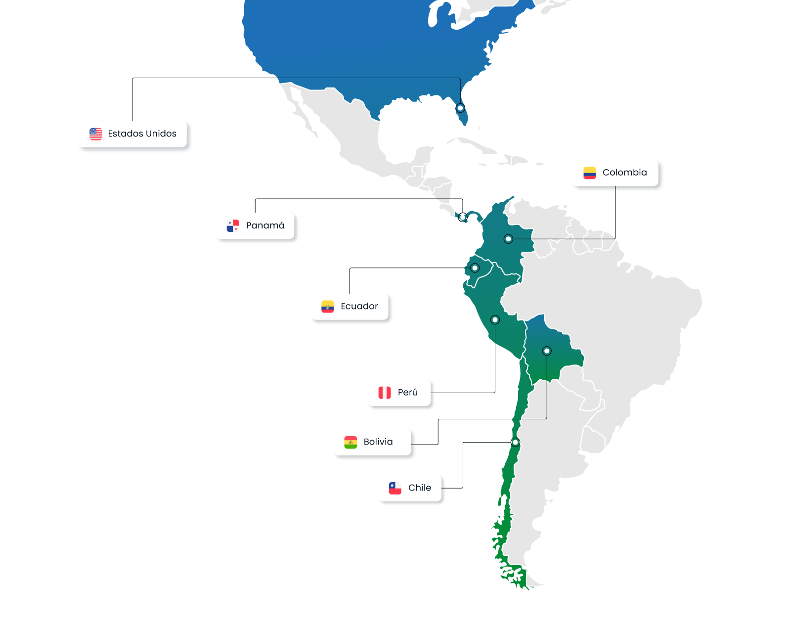 Tenemos presencia en LATAM con oficinas en Chile, Perú, Bolivia, Ecuador, Colombia, Panamá y Estados Unidos, con una cartera de clientes compuesta por importantes empresas del rubro: Telecomunicaciones, Banca, Retail, Seguros, Servicios y otros.